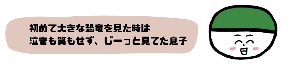 子どもからすると、あの大きさに加えて、たまに動いたり声を出したりと、本物の恐竜だと思ってるっぽい(笑)