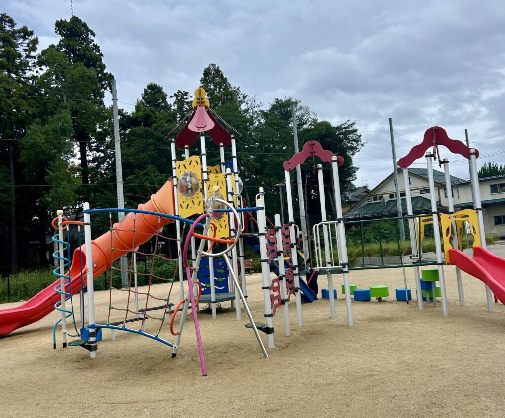 遊具はすべり台やブランコ、砂場、ちょっとしたアスレチックもあって、