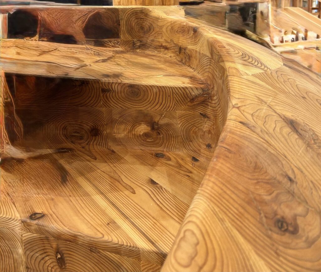 内装には滋賀県産の木材がたっぷり使われていて、木のぬくもりをすごく感じられる空間になっているよ。