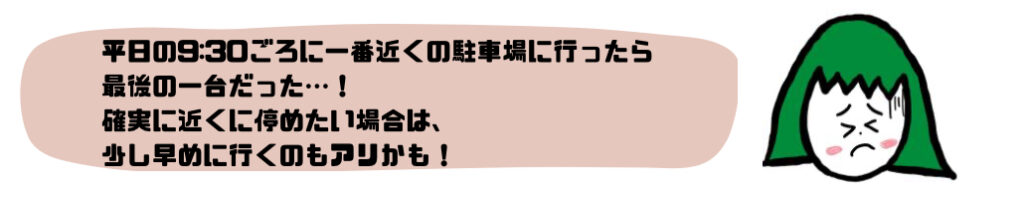 駐車場がオープンする9時以降すぐに到着するように行ってもいいかもしれない!