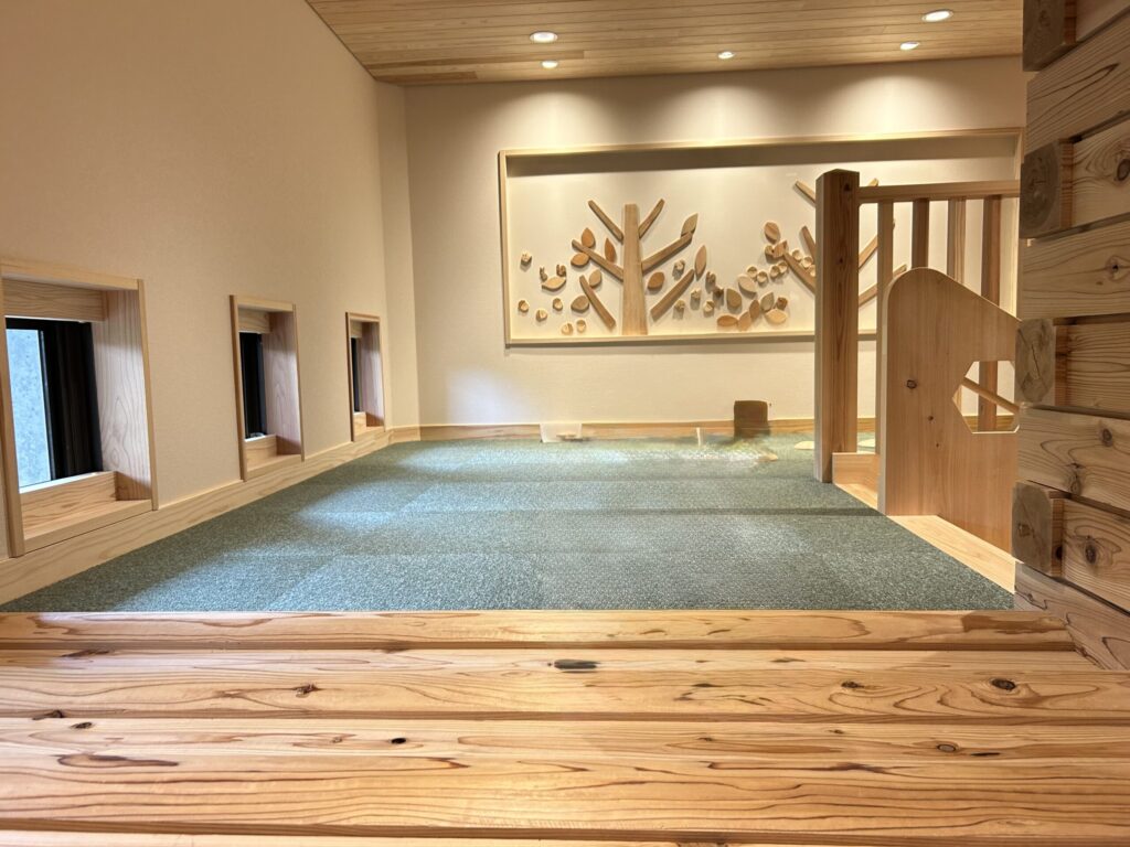 2025年8月にオープンしたばかりの、木の香りがふんわり広がる室内施設。